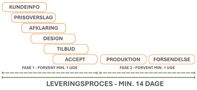 Ved ønske om hurtigere levering eller levering i bestemt uge kan aftale laves.